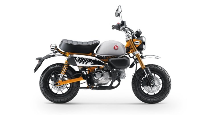 Modelu Monkey se žádný jiný nevyrovná. Má svůj osobitý styl. A jedinečný charakter. Chromovaná, vysoce posazená řídítka a navíc rám, kyvná vidlice a tlumiče nalakované stejnou barvou jako drobná palivová nádrž – a vysoce zvednuté blatníky – to vše přitahuje pozornost, stejně jako mohutné pneumatiky s blokovým vzorkem. Pod ním se však skrývá úsporný vzduchem chlazený motor o objemu 125 cm3 a pětistupňová převodovka, které jsou uchyceny v robustním podvozku s brzdovým systémem ABS řízeným IMU. Je také malý a lehký, váží pouze 104 kg a má pohodlné sedadlo ve výšce pouhých 775 mm od země. Malý motocykl s velkým srdcem, který vás bude bavit. To je Monkey.